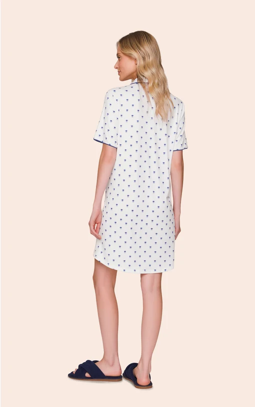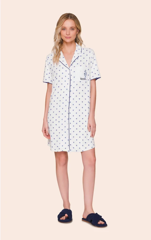 Camisola Feminina Aberta All Print Manga Curta com Botões Bloom In BlueCamisola Feminina Aberta All Print Manga Curta com Botões Bloom In Blue