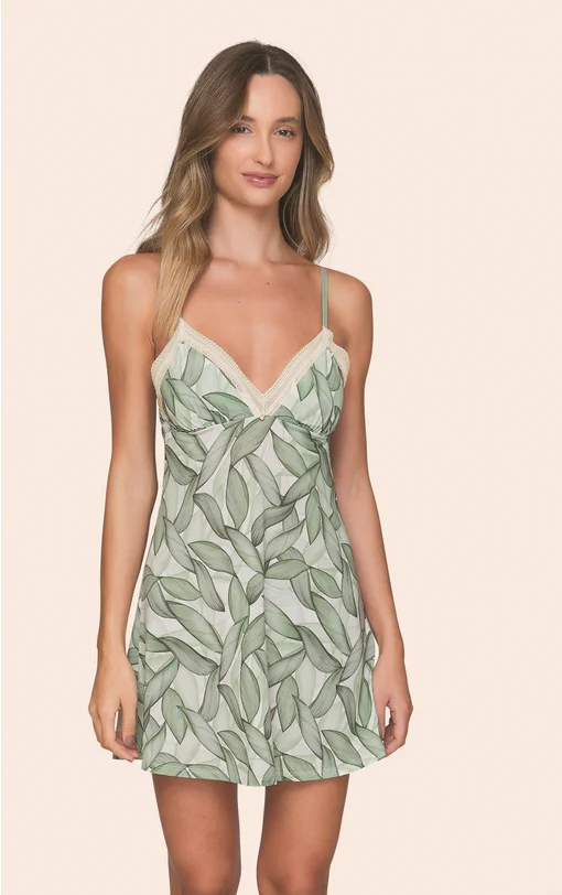 Camisola Feminina com Alça Regulável e Detalhe em Renda no Decote Leaf BreezeCamisola Feminina com Alça Regulável e Detalhe em Renda no Decote Leaf Breeze