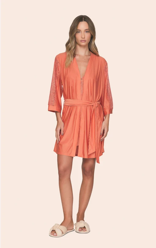 Chambre confeccionado em poliamida com elastano, malha de caimento leve e toque fresco, ideal para os dias mais quentes. Com modelagem ampla, a peça possui mangas 7/8 com punho e recortes em renda vazada, que adicionam um toque de feminilidade e elegância. A faixa na cintura permite ajuste ao corpo, valorizando a silhueta com suavidade e estilo.