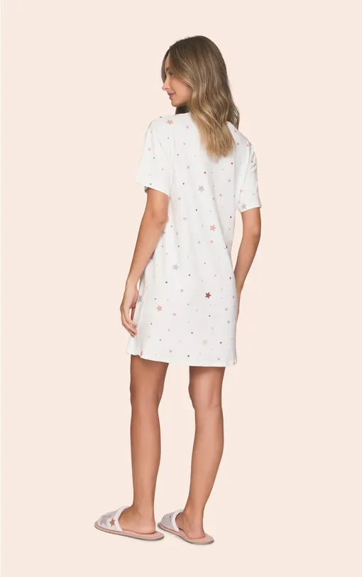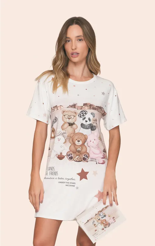 Kit camisola manga curta + caixa exclusiva, com estampa dos nossos personagens em férias no Egito – um cenário mágico onde até as estrelas parecem sussurrar. A camisola é confeccionada em malha sublime touch, com toque pele de pêssego, trazendo arte desenhada à mão e conforto para os momentos de descanso. Acompanha caixa desmontada, especialmente pensada para presentear com muito estilo.
