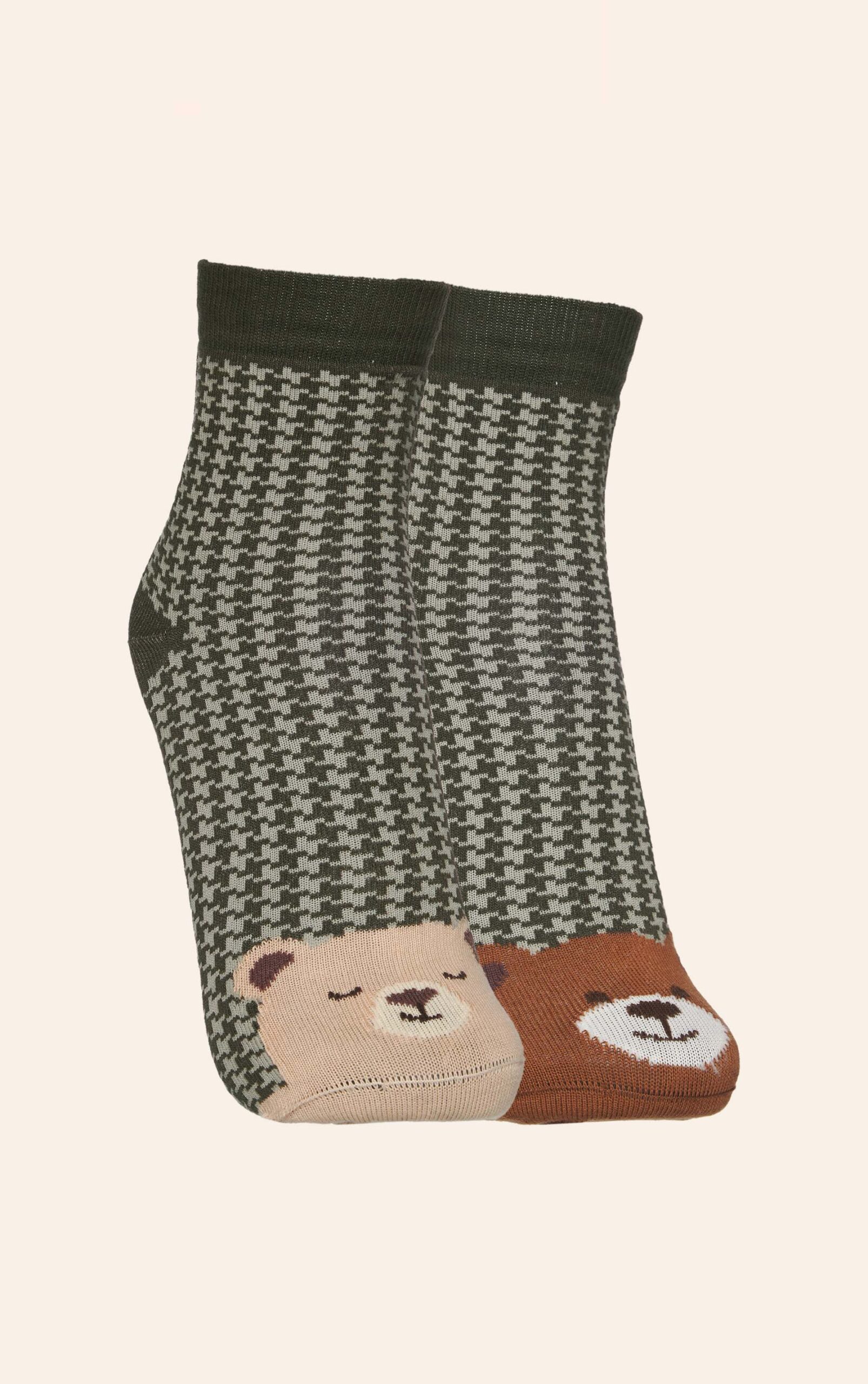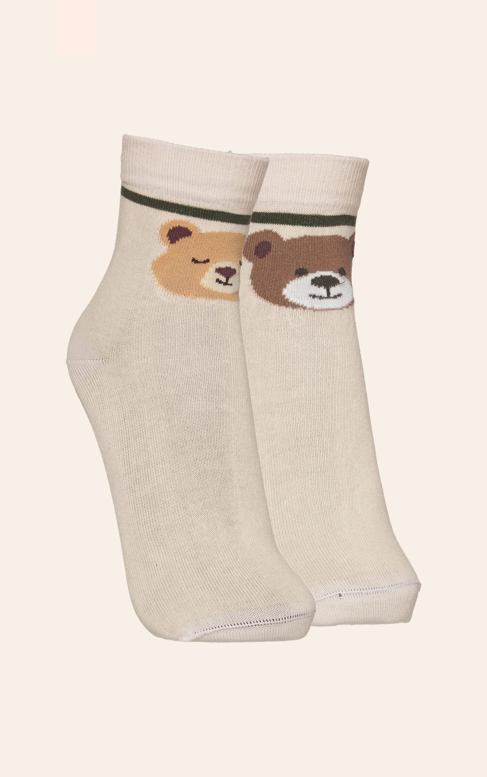 O Kit com 2 pares meias é confeccionado em algodão macio com toque confortável, ideal para acompanhar os momentos de descanso e complementar os pijamas da temporada com aconchego e delicadeza. Com cano médio e ajuste suave, proporcionando bem-estar ao longo do uso. As estampas dos ursos delicados acrescentam um charme lúdico e acolhedor ao look de casa, tornando os momentos relaxantes ainda mais especiais. Um acessório funcional e cheio de personalidade para completar a produção com conforto.