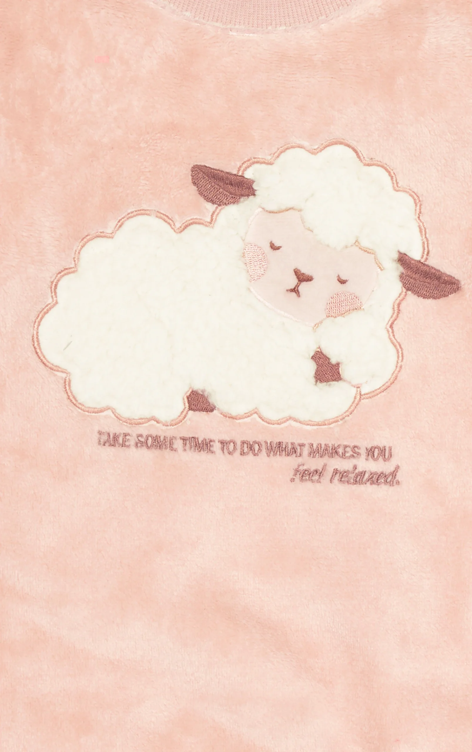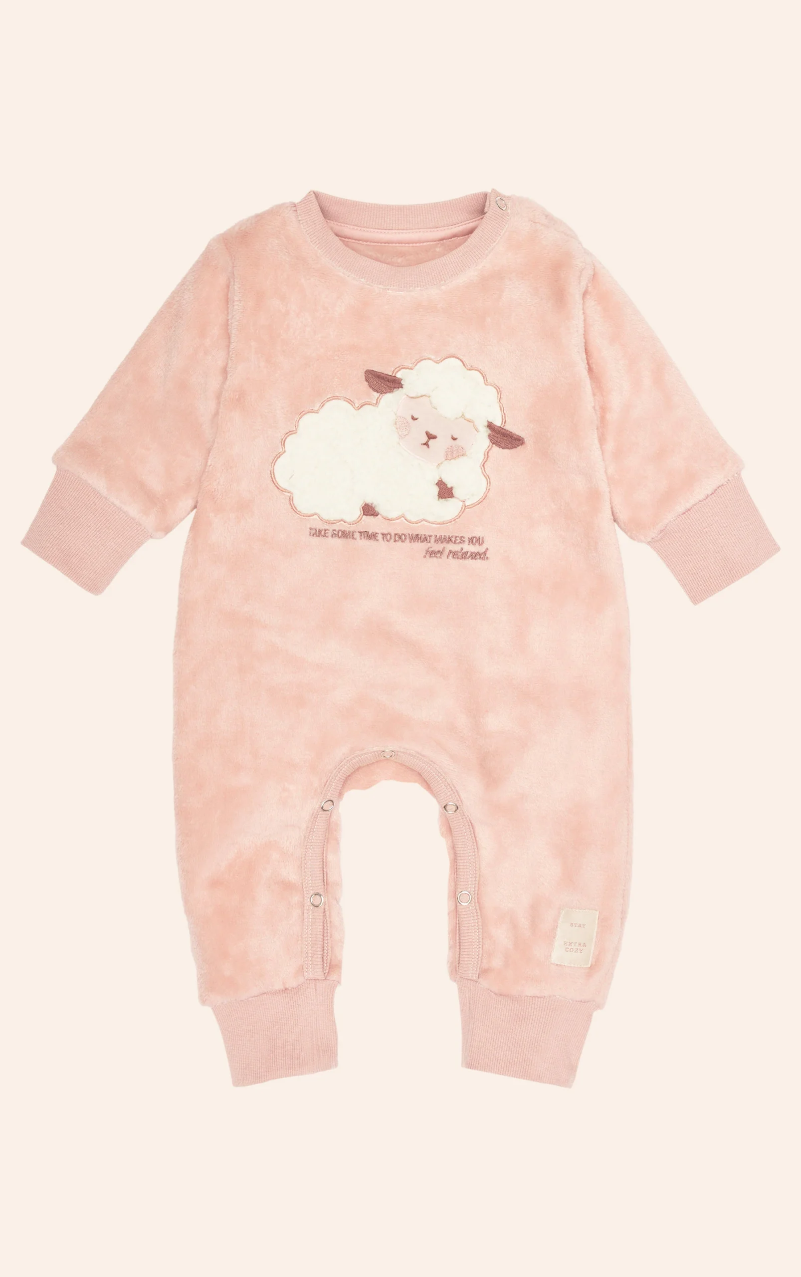 Traduzindo uma atmosfera de aconchego e conforto térmico para os dias mais frios, o macaquinho é confeccionado em fleece de toque peluciado, superleve e extremamente macio, desenvolvido para garantir aquecimento e bem-estar. Ideal para proporcionar conforto e praticidade, a peça possui modelagem confortável e estrutura pensada para facilitar o dia a dia. Conta com abertura entre as pernas e no ombro com botões de pressão, facilitando o vestir e as trocas. Apresenta etiqueta decorativa aplicada na lateral da perna e bordado com aplique lúdico que remete à ideia de “contar carneirinhos”, simbolizando conforto, relaxamento e momentos de descanso.