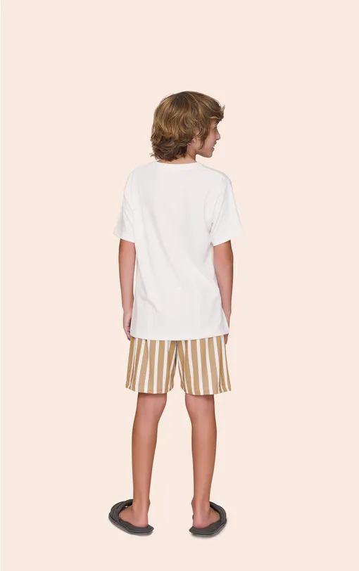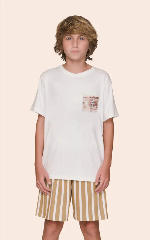 Pijama Curto Infantil Masculino Camiseta com Bolso e Shorts Listrado A Hidden Place