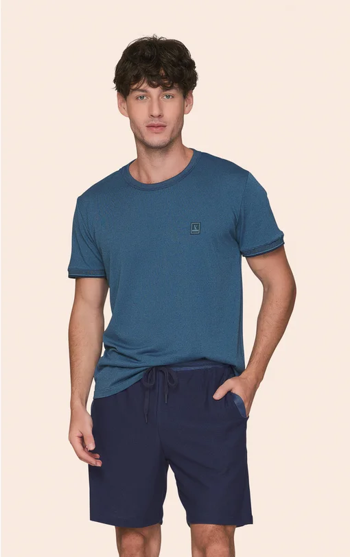 Pijama Curto Masculino Camiseta e Shorts com Bolso Night ShadesPijama Curto Masculino Camiseta e Shorts com Bolso Night Shades