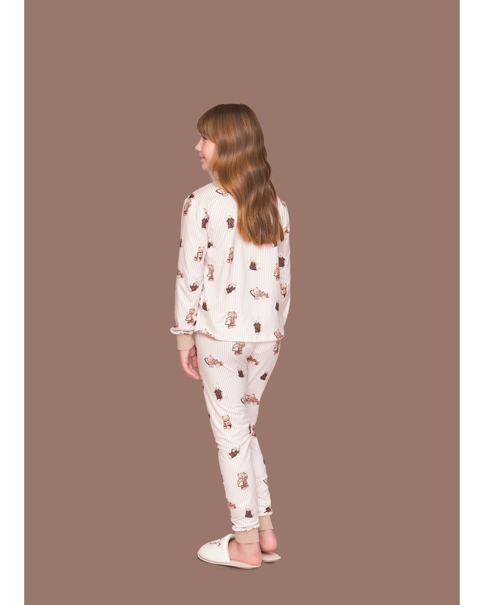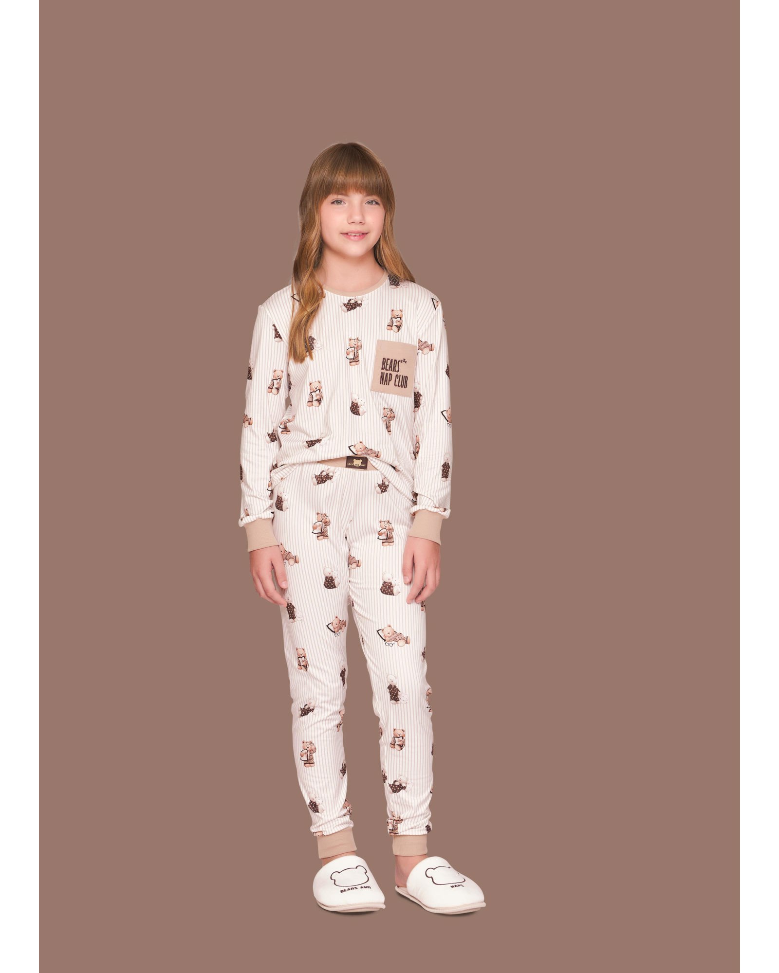 Pijama jogger infantil feminino confeccionado em sublime touch com toque pele de pêssego, que proporciona maciez, conforto e aconchego para os momentos de descanso. O conjunto apresenta modelagem aconchegante, com acabamento em canelado que garante melhor ajuste e conforto ao vestir. A blusa recebe estampa divertida dos ursos em seu momento de descanso e bolso com bordado contrastante, adicionando um detalhe delicado ao visual. A calça jogger complementa o conjunto com caimento confortável, cós elástico e com etiqueta decorativa, ideal para acompanhar os movimentos com leveza. Inspirado no universo acolhedor dos nossos personagens, o conjunto traz uma proposta nostálgica e charmosa, ideal para quem valoriza conforto e afeto no dia a dia.